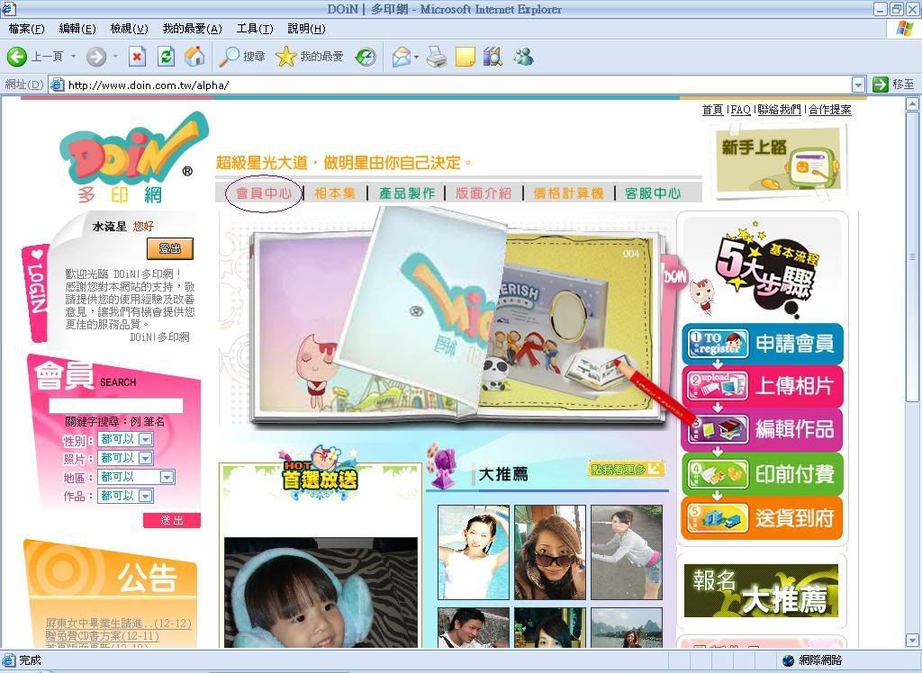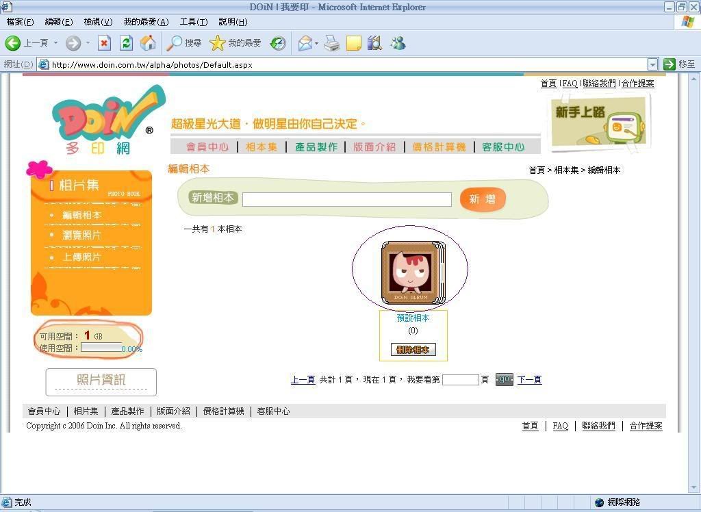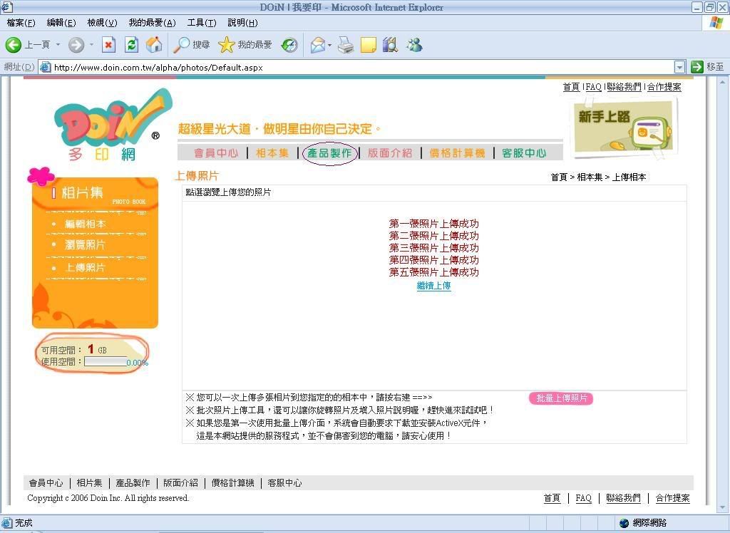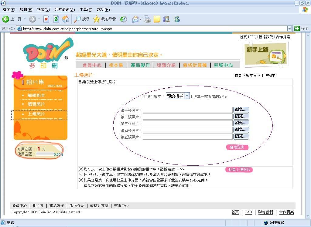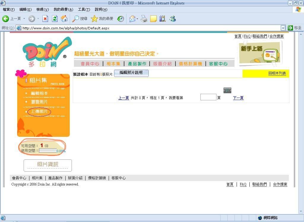 就瀏覽你電腦裡的照片 上傳至他的網頁空間 每人都有1GB的容量