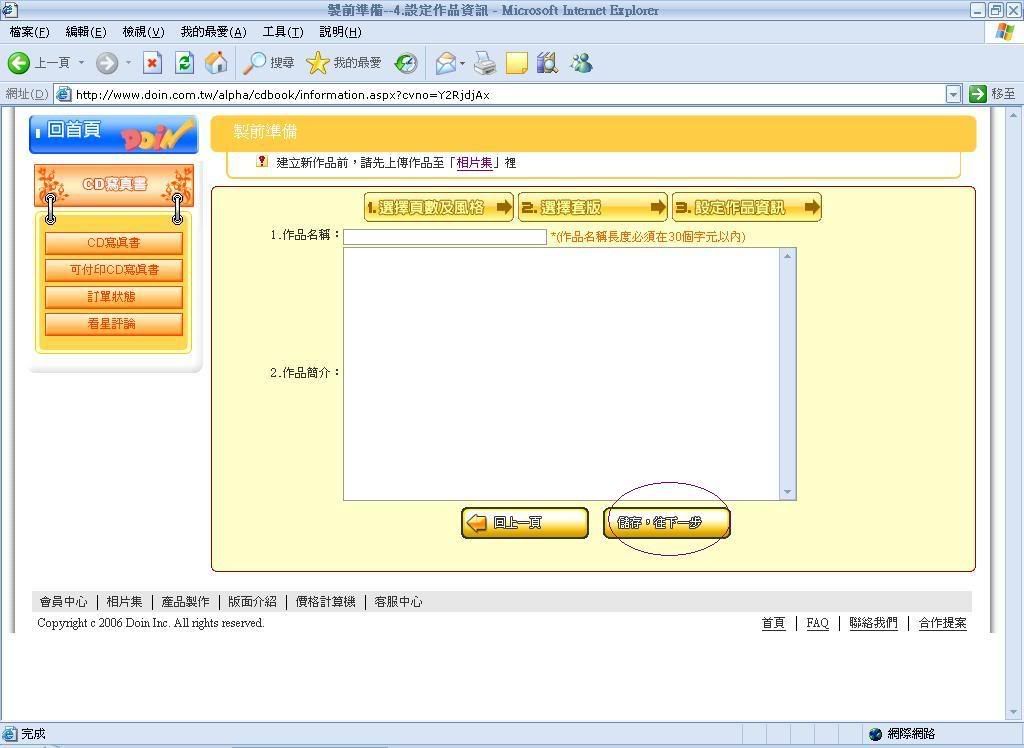 寫你的寫真集名稱 跟說明 之後選 儲存下一步