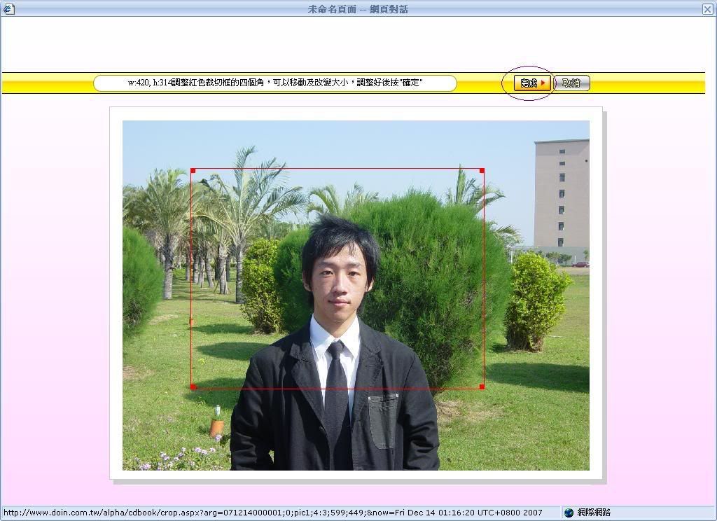 會出現照片設定 紅色框框內點滑鼠左鍵 可以移動框框 紅色框框四角 可以改變框框大小