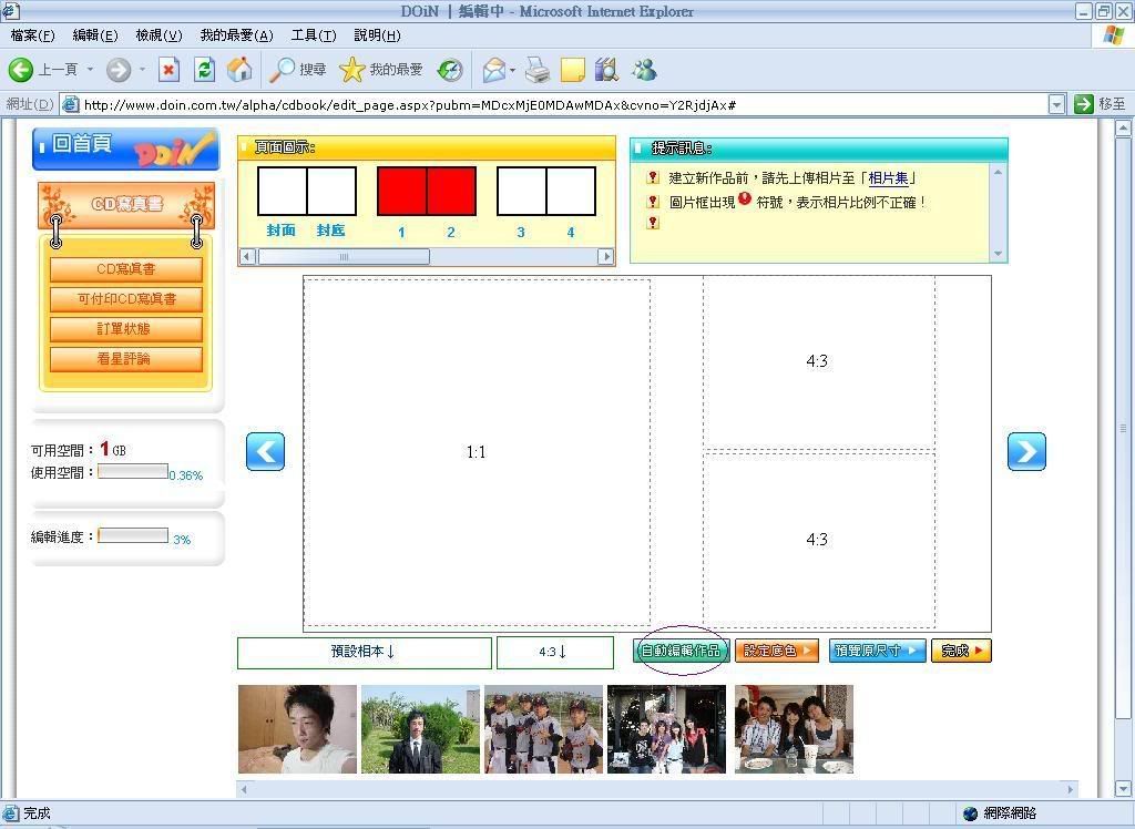 如果你懶得一張一張選照片 花時間的想哪頁要放什麼照片 你可以選自動編輯 他會幫你自動配置