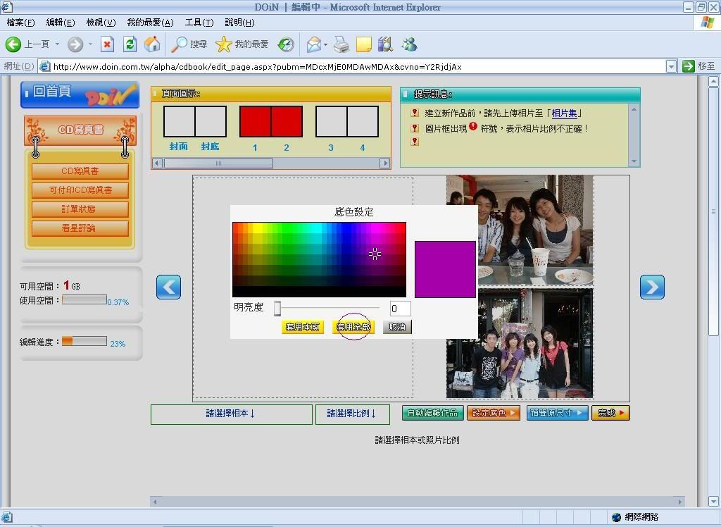 選擇好顏色 可以套用全部 或者你想各頁不同顏色 就自己慢慢設定